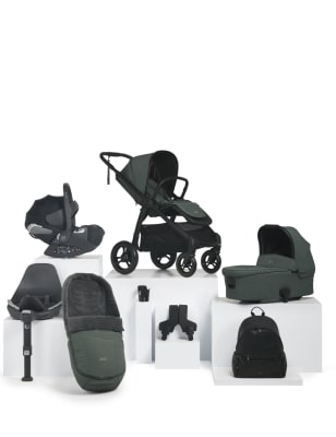 If you're looking for a travel system to handle busy city streets, the Flip XT³ from Mamas & Papas is a stylish choice. Lightweight yet spacious, this bundle comes with a lie-flat seat and comfortable carrycot for newborns. It has a large UPF50+-rated hood for protection with a peek-a-boo window on the top. The pushchair is compatible with most car seats, making it a full travel kit. This eight-piece kit comprises the Flip XT³ Pushchair, Carrycot and Footmuff, Adjustable Changing Backpack, Cybex Cloud T Sepia Car Seat and Base, Car Seat Adaptors and Cup Holder.