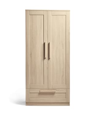 When the ordinary won't do - be bold. Mamas & Papas' Franklin combines bold shapes with robust pieces to create one of their most iconic furniture collections. The large shapes and choice of looks make it a contemporary collection people can't help talking about. There is no need to worry about finding space for all your little one's outfits and essentials with this full-size wardrobe. Baby can sleep undisturbed in the nursery with the soft-close doors and drawer. Hang larger garments on the 2 hanging rails, and tuck smaller items away in the deep drawer. An adjustable shelf makes the perfect space for baby's blankets or bedding. What's more, save time in the morning by hanging an outfit on the internal peg rail.