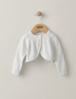 Mamas & Papas Girls Pure Cotton Bow Dress (0-3 Yrs) - 3-6 M - White, White