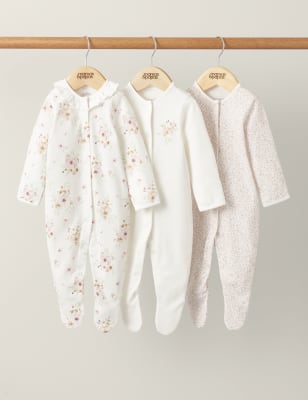 Mamas & Papas Newborn boy 2pc Pure Cotton Floral Outfit (0-12 Mths) - 3-6 M - White, White