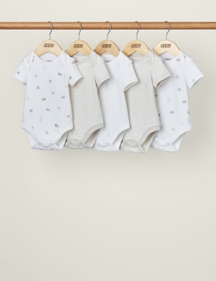 Get ready for a new arrival with this handy pack of five pure cotton bodysuits from Mamas & Papas. Each short-sleeved style has popper fastenings and an envelope neckline to make dressing easier. This pack features a mix of plain, striped and turtle print designs.
