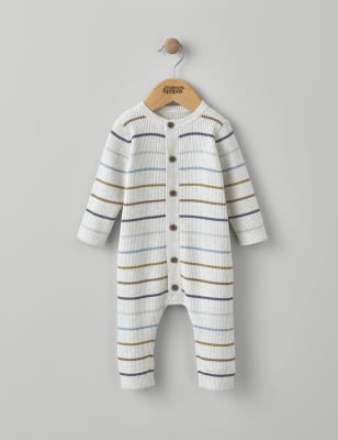 This pure cotton romper from Mamas & Papas ensures your baby looks their adorable best on special occasions. Its long sleeves and short legs are elasticated for comfort, while popper fastenings down the back make dressing easier. The all-over floral print is complemented by a dainty broderie collar.