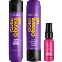 Featuring a shampoo, conditioner and hair mist, the Matrix High Amplify Bundle transforms limp, lifeless hair into voluminous, full-bodied lengths. Set Contents: Volumising High Amplify Shampoo for Fine and Flat Hair 300ml A protein-rich shampoo that cleanses the hair of impurities and excess oil, while adding visible bounce and strength. Volumising High Amplify Conditioner for Fine and Flat Hair 300ml Promote glossy, thicker-looking lengths with this featherlight formula. The conditioner works to nourish, hydrate, detangle and amplify the hair’s appearance simultaneously. Miracle Creator Multi-Tasking Treatment 30ml Lightweight and moisturising, this versatile spray perfectly prepares hair for styling, seeking to protect against heat damage and visibly smooth the strands. The mist also helps to minimise the risk of breakage and reduce the appearance of split ends.
