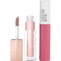 Discover a flawless, fuller-looking pout with the Maybelline Lifter Gloss and Superstay Matte Ink Lipstick Bundle. This supercharged set features a game-changing lip gloss and matte-effect lipstick to help you upgrade your lip wear collection. Available in a full range of shades, this dynamic duo helps to define and enhance your lips, for a stand-out make-up look.Set Contents:Maybelline Lifter Gloss 5gEnhance your natural pout with this innovative lip creation. Infused with hyaluronic acid, this powerful ingredient helps to deeply hydrate and smooth the skin for plumper and fuller-looking lips. Equipped with an XL cushioned wand, this comforting and easy to wear formula effortlessly glides across the lips, leaving an ultra-glossy high-shine finish. This lifter gloss provides a shade for every occasion and adds glamorous colour to your make-up look.Superstay Matte Ink Lipstick 2gExperience a lipstick that provides all-day wear, in shades that will take your look from day to night. Non-drying and non-transferable, this unique formula lasts up to 12 hours and delivers comfortable and long-lasting wear. Featuring an exceptional arrow applicator, this formula easily glides across the lips to provide precision and definition. This liquid lipstick helps to add a pop of colour to your make-up look and leaves your lips with a flawless-looking matte finish.