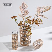 Merlin Living Smokey Gray Glass Vase Decoration Marble Base Home Decor For Glass Flower Vase