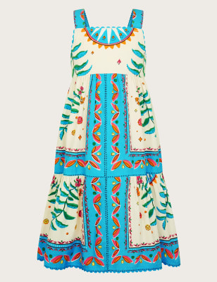 This pretty broderie dress from Monsoon will make a delightfully summery addition to their wardrobe. The sleeveless style is made in a regular fit, with frill-trimmed shoulder straps at the square neckline. Ruffles add gorgeous fluttery detail to the bodice and the tiered skirt. This piece is lined for a comfy wear.