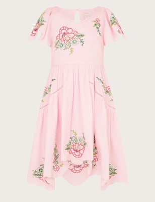 Monsoon Girls Cotton Blend Floral Embroidered Dress (3-13 Yrs) - 10y - Pink Mix, Pink Mix