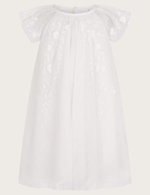 Monsoon Girls Embroidered Tulle Occasion Dress (3-13 Yrs) - 11y - Ivory, Ivory