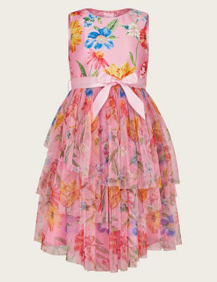 Bring standout style to their occasion wardrobe with this charming dress from Monsoon. It's made to a comfy regular fit, with a sleeveless, round-necked bodice. Fabulous floral-printed ruffles form the skirt, making this an ideal piece for swirling in on the dance floor. There's a removable ribbon at the waist, tied into a pretty bow.
