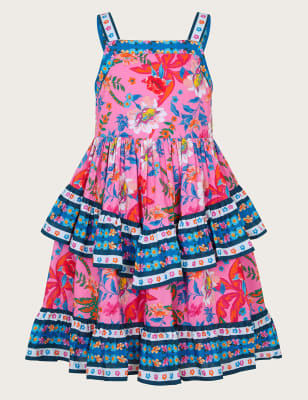 Monsoon Girls Pure Cotton Floral Tiered Party Dress (3-13 Yrs) - 11y - Light Pink, Light Pink