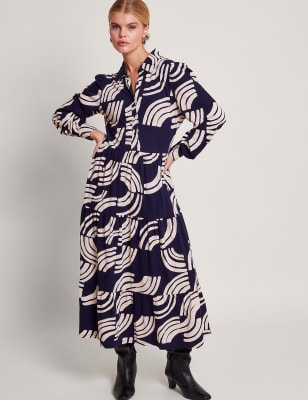 Monsoon Women's Cotton Rich Floral Midi Tea Dress - XXL - Navy Mix, Navy Mix