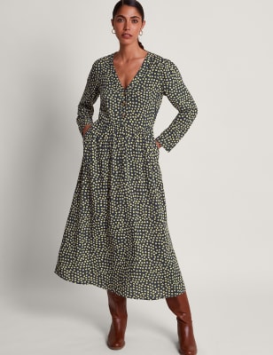 This Monsoon tea dress is crafted from pure cotton for a lightweight and breathable feel on sunny days. It's cut in a regular fit, with a v-neckline, breezy short sleeves and a versatile midi-length skirt. Intricate embroidery adds a touch of boho-inspired detail.
