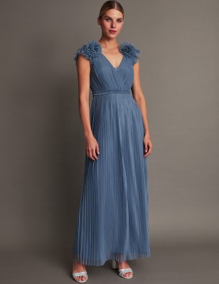 This Monsoon maxi dress is embellished with an all-over floral design for an eye-catching look. The regular fit style is crafted from lightweight fabric for a breathable feel, with a flattering wrap front and a waist-enhancing tie detail. An elegant v-neckline and short flutter sleeves add a pretty finish. This piece is fully lined for comfort.