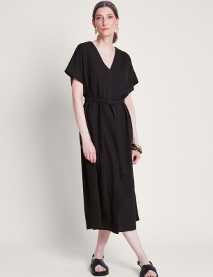 Monsoon Women's Leaf Print Belted Maxi Shirt Dress - 18 - Black Mix, Black Mix