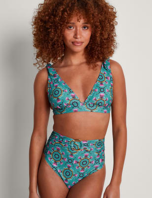 Make a statement by the pool in this vibrant printed swimsuit from Monsoon. It's designed with a flattering high-leg cut and a belt detail at the waist for a secure fit.
