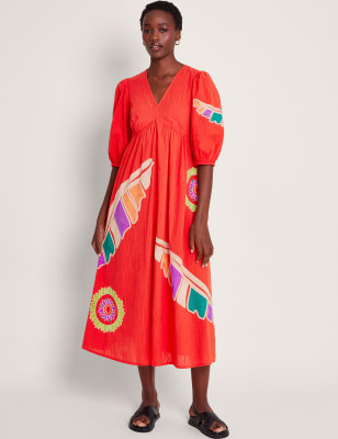 Monsoon Women's Pure Cotton Embroidered Square Neck Dress - Black Mix, Black Mix