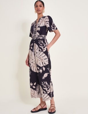 Embrace effortless style on warm days with this pure cotton jumpsuit from Monsoon. This lightweight style is cut with a wide, cropped leg for a cool, floaty feel. The strappy bodice has a square ruffle neckline with pretty bead detailing. This piece is lined for comfort and a smooth drape.