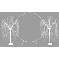 This stunning White Moongate and Weeping Willow Tree set is just what you need to give your wedding a truly glamorous and stylish look. The white detailing and warm white lights will create an exquisite display that is guaranteed to charm your guests and leave you with everlasting memories from your special day. Place the Moongate at the end of your aisle for the ultimate wow-factor or use it as an intricate photo backdrop – its classic design makes it super versatile. The detachable legs allow you to choose between having it standing, elevated, or hung, so you can be as creative as you wish with your display. The large 2m Moongate provides plenty of space for you to decorate with as many flowers, drapes, and balloons as your heart desires, so you can go all out with your design. Made of high-quality aluminium oxide this Moongate has a gorgeous, chip-resistant white finish. The circle breaks down into 10 equal parts so it’s super easy to transport and store in the free drawstring bag