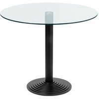 Montone round glass small or large dining kitchen table black or aluminium cast iron base - various sizes Available with either a Cast iron Black or aluminium coloured cast iron base and frame. Commericial Quality ideal for home or commercial premises Modern Design Pedestal Frame 10mm Thick Clear Glass Heavy Weighted Base Protective rubber underneath helps to keep your floor in perfect condition. Available Sizes 76cm high Table top sizes available in 60cm, 65cm, 70cm, 75cm, 800cm, 90cm or 100cm Lead time 2-4 weeks Assembly Required