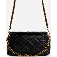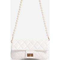 Ego Muse Pearl Detail Strap Quilted Cross Body Bag In Black Faux Leather, One Size -The ultimate bag of dreams just landed doll. Featuring a black faux leather material, with pearl strap and quilted detailing in a cross body design.
