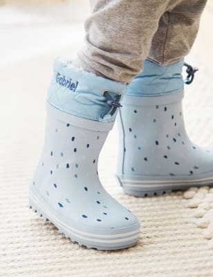 This wonderful pyjama set includes a pair of dark blue bottoms and a baby-blue long-sleeved top. A spotted brontosaurus decorates the front, with the word 'Sleepysaurus' tracing its back and a pattern of miniature dinosaurs and trees covering the bottoms. Add your sleepysaurus's name to this brilliant blue pyjama set to give them sweet dreams.