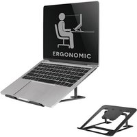 The Neomounts by Newstar NSLS010 is a universal stand for laptops from 11" up to 17" with a maximum weight capacity of 5 kg. The stand has six different height positions and a ultra-slim folding design. <br><br>The lightweight compact design makes the stand ideal to take with you wherever you want. The open configuration ensures good ventilation of the laptop and the anti-skid silicon pads and safety ledge stopper ensure solid positioning. A nifty travel pouch is included with the stand.