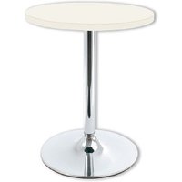 Shiny chrome finished solid base Excellent combination of wood and metal Also available with black top Finish: MDF/Chrome The round tabletop is made from wood and covered in white lacquer Satin Finish - Chrome Frame and Base Top thickness 2cm Dimensions CM Inches Height 75 29.5 Width 60 23.6 Base Diameter 45 17.7 Protective Base To Keep Floors Safe Dimensions CM Inches Height 75 29.5 Width 60 23.6 Base Diameter 45 17.7 Assembly Required