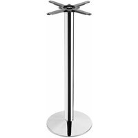 Classy chrome single pedestal square poseur dining height table base - guaranteed to impress! Highest quality chrome finish pedestal and base with adjustable feet Dimensions Height: 110cm Width: 43x43cm Max Table Top Size: 75cm diameter or 70cm x 70cm Dimensions Height: 110cm Width: 43x43cm Assembly Required