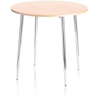 Full Height: 740mm Circular round wood veneer dining kitchen table The table is great for kitchen, dining rooms, cafes, bistros, company break out areas and pubs. This lovely table comes with beautiful simplistic chrome legs, which look great paired with the Beech top. The table top has an overall diameter of 800mm and a full height of 740mm. Full Height: 740mm Assembly Required