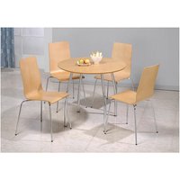 Netfurniture – Lingham White Wood Set Chrome Legs Circular Round Table 4 Chairs – White
