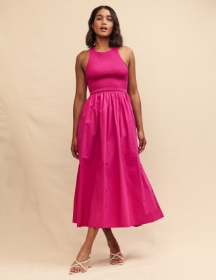 This Nobody's Child tea dress is made from a subtly textured fabric that drapes like a dream. It's cut in a regular fit, with a flattering scoop neck and short angel sleeves. A tie detail at the back cinches the waist, while the skirt falls to a flowing midi length.n Nobody's Child designs are cut to a form-fitting shape, so if you're looking for a more relaxed fit, we recommend choosing the next size up.