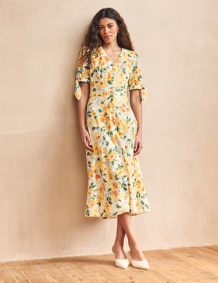 Nobody'S Child Women's Floral Angel Sleeve Mini Tea Dress - 10 - Yellow Mix, Yellow Mix