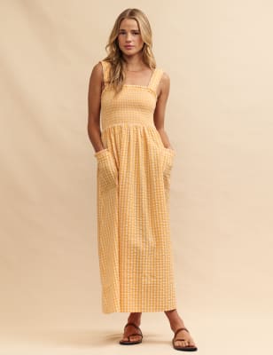 This Nobody's Child tea dress blooms with a sweet ditsy floral print. It's cut in a regular fit, with a flattering empire waistline and a floaty mini-length skirt. The elegant scoop neckline is framed by short angel sleeves that add fluttery movement to the piece. n Nobody's Child designs are cut to a form-fitting shape, so if you're looking for a more relaxed fit, we recommend choosing the next size up.