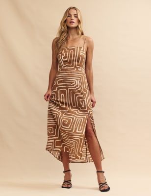 The fabric for this Nobody's Child dress is spun with a touch of linen, for a structured look and a luxurious handfeel. It's cut in a comfy regular fit, to a flattering waisted silhouette. A v-neckline gives a feminine feel to the sleeveless bodice, while the midaxi-length skirt is gathered at the waist to create extra fullness.n Nobody's Child designs are cut to a form-fitting shape, so if you're looking for a more relaxed fit, we recommend choosing the next size up.