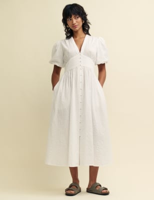 Made from soft pure cotton, this Nobody's Child dress is the perfect comfy-casual option for sunny days. It's cut in a relaxed fit, with a stretchy shirred bodice featuring a crew neckline. The midaxi skirt drapes into beautiful tiers, creating a full and flowing shape. n Nobody's Child designs are cut to a form-fitting shape, so if you're looking for a more relaxed fit, we recommend choosing the next size up.