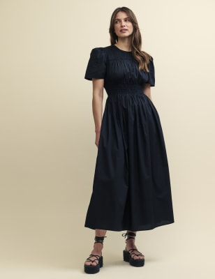 Nobody'S Child Women's Pure Cotton Shirred Midaxi Waisted Dress - 18 - Black, Black