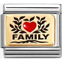 The Nomination Composable CLASSIC Plates Family Charm 030284/57* features a bonded yellow gold plate with multi-coloured enamel FAMILY text and a heart design which is set on a stainless-steel base. A perfect addition to add to your COMPOSABLE bracelet.
