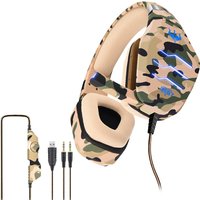 OVLENG GT88 USB+3.5mm Wired Over-Ear Gaming Headphone Camouflage Ergonomic E-sports Headset with LED Light – Camouflage Green
