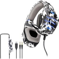 OVLENG GT88 USB+3.5mm Wired Over-Ear Gaming Headphone Camouflage Ergonomic E-sports Headset with LED Light – Camouflage Grey