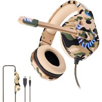 OVLENG GT95 Camouflage Design USB+3.5mm Wired Over-Ear Headphone Ergonomic E-sports Gaming Headset with LED Light – Camouflage Green
