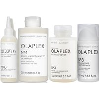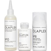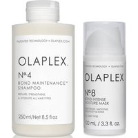 A powerful repair duo powered by Olaplex's patented bond-building technology to fortify bonds in your hair, this pre-shampoo treatment and mask can be incorporated seamlessly into your usual wash routine. Packing hydration, they target areas of broken disulphate bonds in structure, promoting a stronger hair structure and improving texture. Hair feels strong and pliable. Set Contents: No.3 Hair Perfector 100ml A weekly pre-wash treatment that rejuvenates dry, damaged hair with silky-soft texture and shine. Ideal for in-between maintenance in between salon visit, the bond-building treatment strengthens and visibly improves the look of healthy hair. No.8 Bond Intense Moisture Mask 100ml An incredibly conditioning mask ideal for hair weakened by harsh environments, heat-styling, colour treatments and brushing when wet. Revitalise a silky-soft feel and healthy shine.