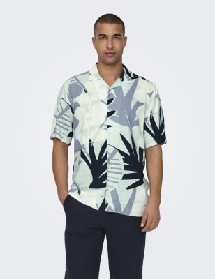 Get into the holiday spirit with this breezy cotton-linen blend shirt from Only & Sons. It's cut in a comfy regular fit, with a button-through front and stylish revere collar. An all-over Hawaiian print gives this short-sleeved piece a laid-back feel.