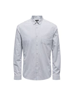 This cotton-rich Oxford shirt from Only & Sons will add some summer-ready style to your smart-casual looks. Cut in a regular fit, it features breezy short sleeves and a resort collar. It's decorated with soft vertical stripes, and has a curved hem so it looks just as good worn loose as tucked in.