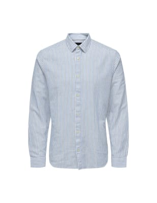 Only & Sons Men's Cotton Rich Striped Oxford Shirt - Blue Mix, Blue Mix,Red Mix