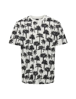 Only & Sons Men’s Pure Cotton Palm Tree T-Shirt – White Mix, White Mix