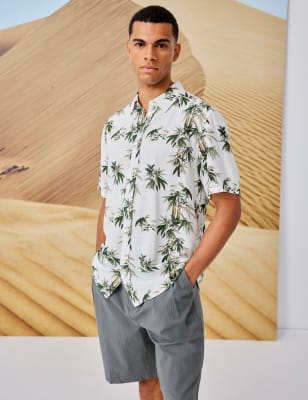 Add a summery touch to your casual wardrobe with this pure cotton t-shirt from Only & Sons. It's cut in a comfy regular fit, with a classic crew neckline and breezy short sleeves. A colourful photo print on the chest shows palm trees with a sunset backdrop for a laid-back feel.
