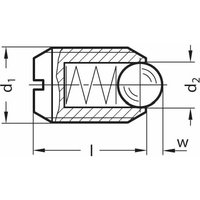 Ganter: GN615-M6-KN Sping Plunge; Stainless Steel; Standad Sping Spring plungers GN 615 are used as detents as well as for push-on and push-off applications and ejecetors. Features: -Type KN: stainless steel, standard spring load -Housing stainless steel AISI 303 -Ball stainless steel AISI 420C, hardened -Spring stainless steel AISI 631 MPN: 615-M6-KN EAN: 4045525313361 GN615-M6-KN Sping Plunge; Stainless Steel; Standad Sping Attributes: D1: M6mm D2: 3.5mm L: 14mm MFR Part No.: GN615-M6-K Type: KN Stainless Steel W: 1.0mm