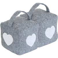 Oypla - Heart Pattern Herringbone Fabric Heavy Weighted Cube Door Stop Stopper with Handle