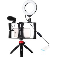PULUZ PKT3025 Photography Kit Vlogging Rig Microphone Tripod Mount Cold Shoe Tripod Head with LED Ring Light – Blue