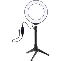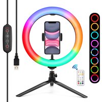 PULUZ PKT3074B 6.2-inch 16cm RGBW Light + Round Base Desktop Mount USB Dimmable LED Ring Lights with Tripod & Remote Control